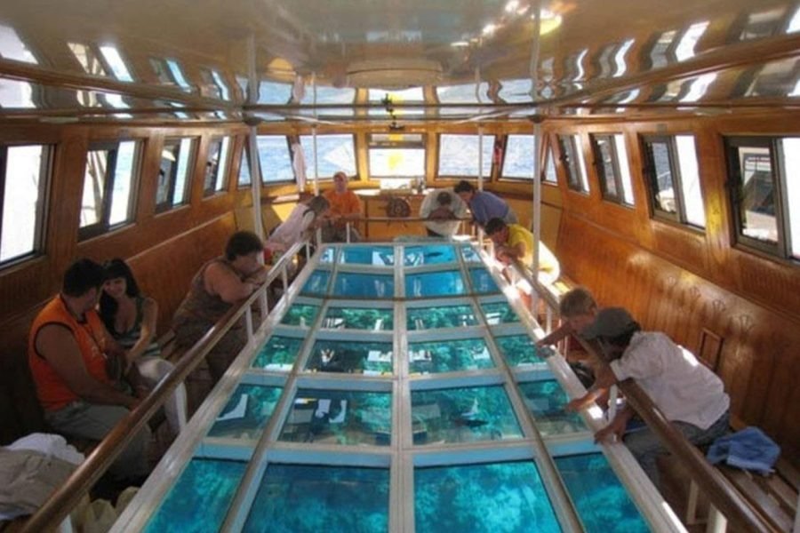 Enjoy a comfortable and safe trip on a glass-bottom boat equipped with air conditioning and a panoramic bottom that offers a breathtaking view of the underwater world. During the trip, you can observe and photograph the famous coral reefs, exotic fish, moray eels, rays, and other marine creatures of the Red Sea. A guide will provide fascinating details about the marine flora and fauna. This excursion is perfect for both kids and adults.
