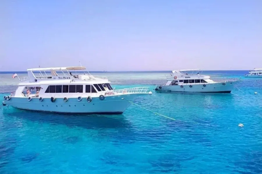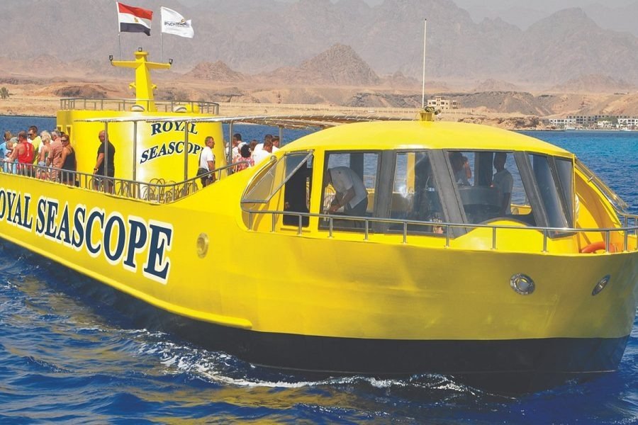 Experience the wonders of the Red Sea aboard a two-deck yacht with a capacity of up to 35 people. The lower enclosed deck, submerged 3 meters underwater, features air conditioning and panoramic windows, providing stunning views of the underwater kingdom. For a full hour, you’ll observe breathtaking coral reefs, brightly colored fish, large tunas, barracudas, and graceful turtles. A guide will provide fascinating insights into the marine life. The upper deck offers a café where you can relax and sunbathe.