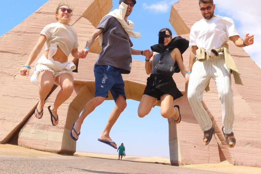 The tour is available at sunrise, during the day, or at sunset. We will pick you up from the hotel, provide a brief driving instruction, and then embark on a mini adventure through the desert. Along the way, we stop at the most beautiful spots for photos, visit a Bedouin village where you can relax, meet the locals, taste traditional Bedouin tea, and ride camels if you wish.